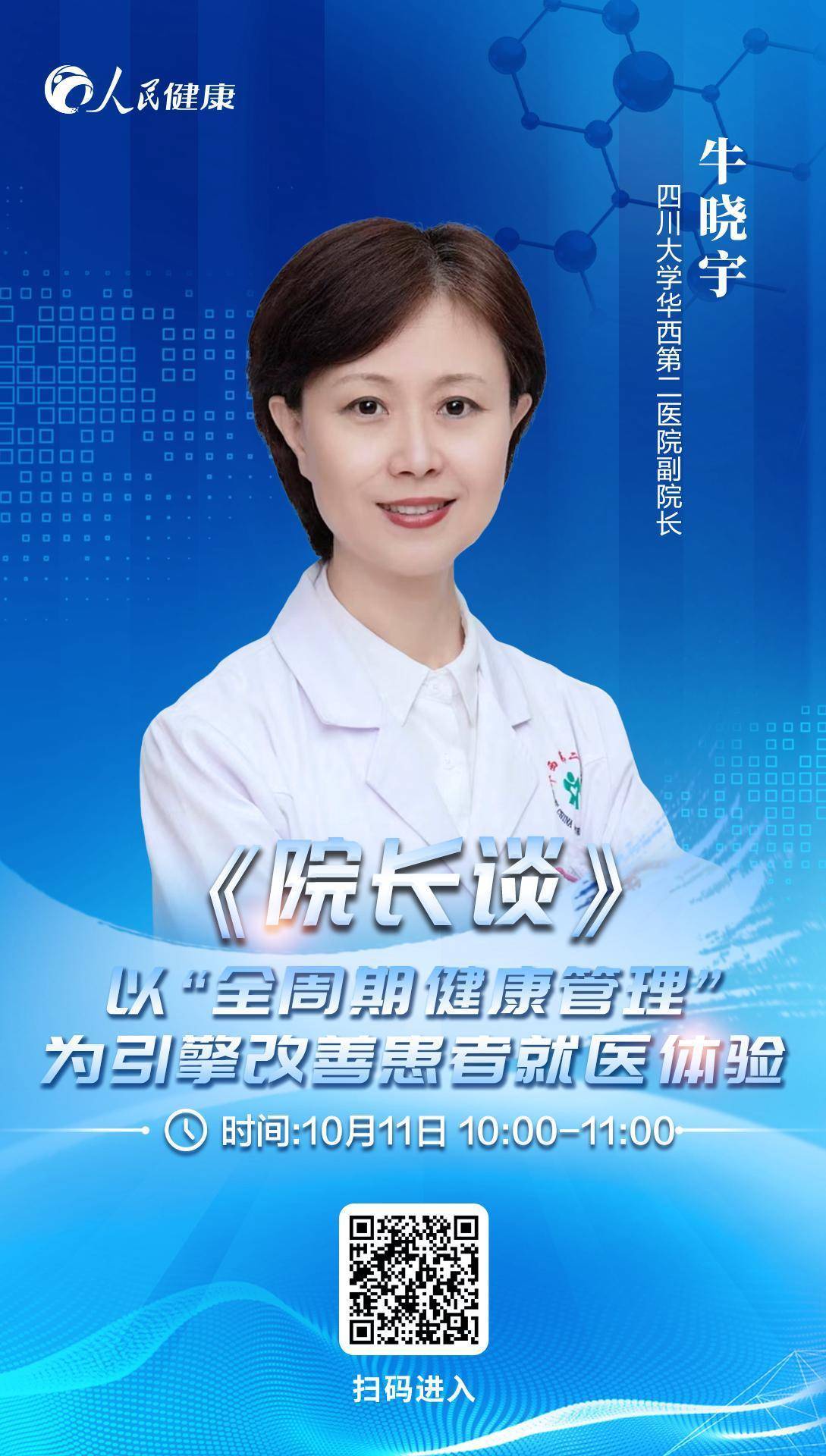 10月11日10:00-11:00恒利配资,四川大学华西第二医院副院长牛晓宇将做客演播室,就“以‘全周期健康管理’为引擎改善患者就医体验”话题与网友在线交流。