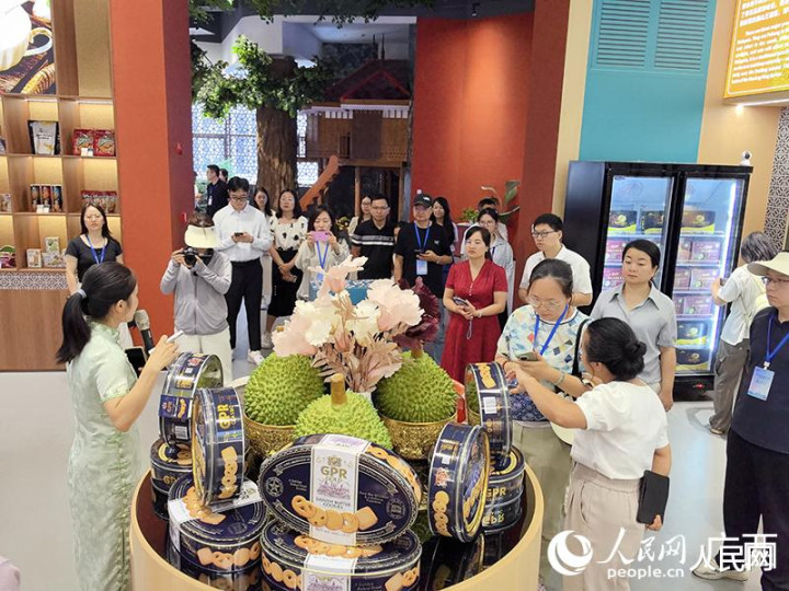 与会人员在中国—东盟特色商品汇聚中心实地调研。人民网 付华周摄